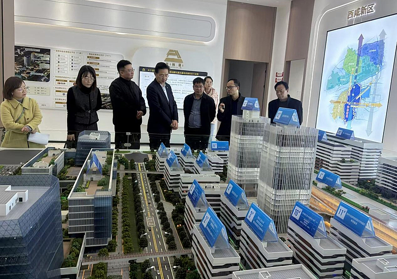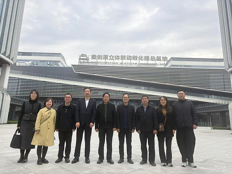 为了更好地推进科技成果转化,提升教师创新与应用转化能力,实时了解前沿科技发展趋势, 11月12日,科研处处长李宗孝教授带领工矿企业铁路绿智运输陕西省高校工程研究中心廖世勇教授、轨道交通智能运维陕西省高校工程研究中心贾亚娟教授、西安市轨道路基道床病害监测与防控重点实验室办公室主任张一鑫,及鄠邑区科技工信局科技管理科科长、科研处副处长解娜(挂职)等10人赴西咸新区沣东新城的秦创原立体联动孵化器总基地交流学习,西咸新区沣东新城改创局副局长唐伟接待了一行人。
