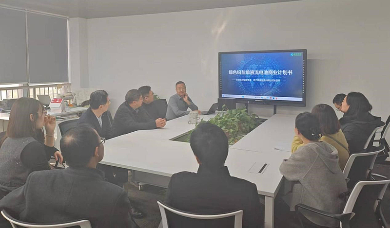 唐伟介绍了秦创原创立的背景、愿景及建设成效。随后带领参观了西安秦源智科储能科技有限公司年产1GWh绿色铅盐单液流储能电池(无膜)研发项目。据悉,该项目已落户甘肃省张掖市高台县,依托西安理工大学科技成果转化成立的新能源公司,由西安理工大学刘政及其团队研制。公司CEO赵云出身西安理工,曾任隆基绿能公共事务经理,首席科学家刘政博士,2007年毕业于英国谢菲尔德大学,获博士学位,2011年进入西安理工大学任教,成立液流电池研发团队,并与英国南安普顿大学合作。该公司研制的产品,其成本与锂电池价格持平,绿色铅盐单液流电池首次实现了单一电解液双极性结构,电堆去掉了质子交换膜,降低电堆成本并极大地保证了系统安全性。自研一体化双极板,性能优于美国能源协会标准,电解液及流道技术达到同行业领先水准。公司研发的高性能电解液在-40℃至50℃之间充放电库仑效率达到了95%以上,大部分环境工况下无需温度调整。自研单液流电池专用BMS、EMS系统,该电池体系具有高安全、宽温域、低成本、环境友好等优点。