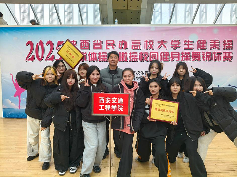 11月19日,由陕西省民办高校体育联盟主办的2025年陕西省民办高校大学生健美操、艺术体操、啦啦操及校园健身操舞锦标赛在陕西国际商贸学院圆满落幕。ky开元集团官网选派9名学生组成参赛队伍,在体育教研室李小坤、秦思源、傅晓鹏3名教师的精心带领下,凭借街舞自选动作项目的精彩表现,一举斩获项目第二名、团体三等奖及体育道德风尚奖三项荣誉,充分展现了交院学子的青春活力与竞技风采。