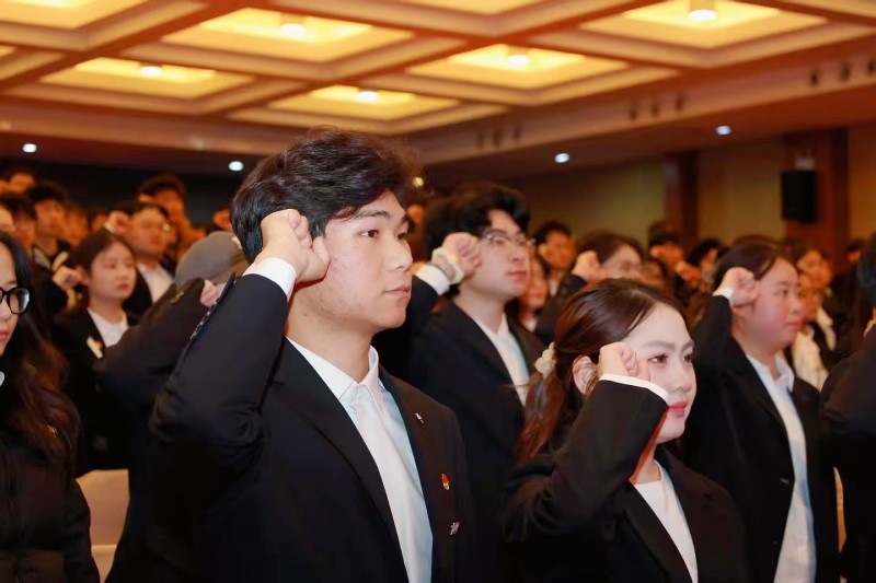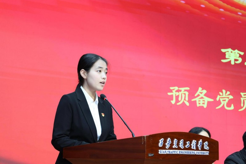 仪式上,主席台就座领导为预备党员代表佩戴了党员徽章。全体预备党员进行了入党宣誓,老党员重温了入党誓词。预备党员教师代表马蜜,预备党员学生代表冯思颖分别发言,他们结合自身工作和学习实际,分享了自身的成长感悟与责任担当。马蜜表示,作为教师预备党员,将始终牢记“为党育人、为国育才”的初心使命,把党性修养融入课堂教学与育人实践中,以严谨的治学态度和扎实的专业能力,做学生思想上的引路人、学业上的指导者,在教学改革与迎评促建工作中主动担当作为。冯思颖表示,要以“青春向党、实干笃行”为目标,积极参与志愿服务、学科竞赛和班级建设,争当学风建设的标兵、社会实践的表率,带动身边同学共同为学校发展贡献青春力量。
