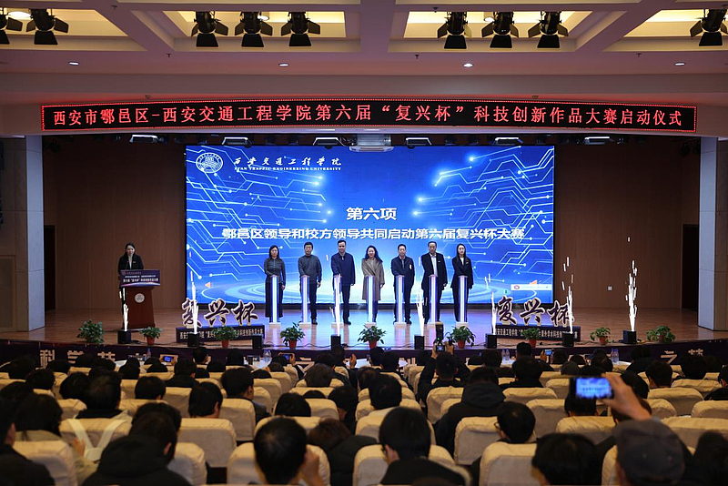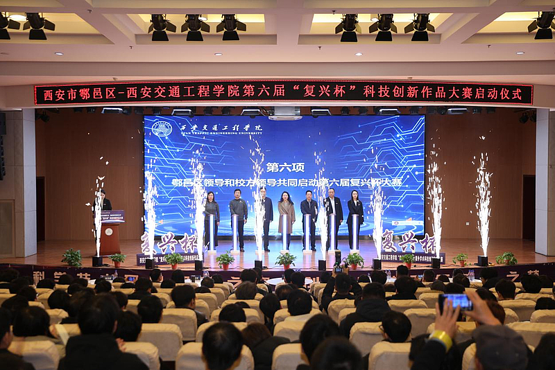 为激发青年学子创新活力,深化产学研融合,服务区域高质量发展,12月16日,ky开元集团官网与鄠邑区政府在学校学术报告厅共同举办于第六届“复兴杯”科技创新作品大赛启动仪式。本次大赛以“科学技术开启智慧之窗,创新实践引领复兴之梦”为主题,旨在搭建实践平台,凝聚育人合力。鄠邑区委常委、统战部部长管永华,鄠邑区政府副区长郑伟,鄠邑区科技工信局副局长常菁、ky开元集团官网执行理事张慧、副校长石广田、王勇、理事会办公室主任、创新创业学院院长千红出席启动仪式。学校相关职能部门、各二级学院负责人及学生代表共同参加了活动。启动仪式由团委书记王小英主持。