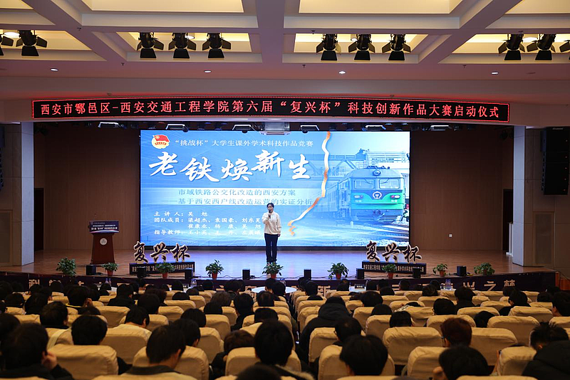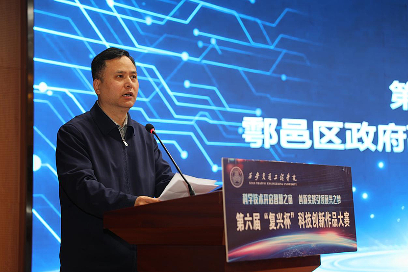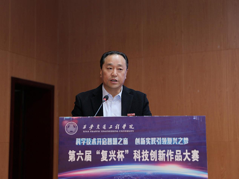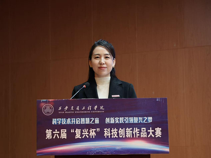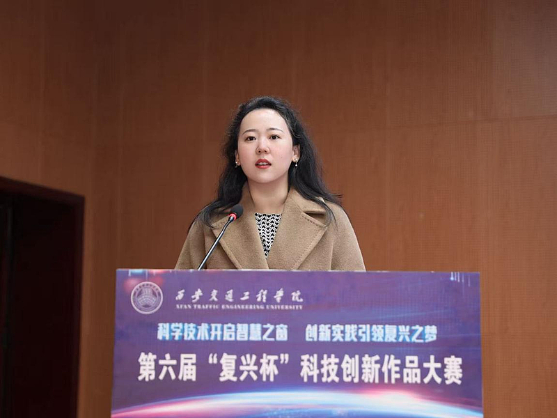 张慧为大赛致辞,强调在迎接本科教学评估的关键时期,本届大赛是对学校创新创业教育成果的集中检验,也是展现学子拼搏精神和创新实力的重要契机。她指出,大赛是学校贯彻党的二十大精神、落实科技创新重要论述和陕西省创业支持部署的具体行动,学校将持续完善双创教育体系,融入人才培养全过程。张慧特别提到“复兴杯”作为衔接高层次赛事的重要平台,有效推动了学生创新能力与实践能力的提升。通过这一赛事的孵化和选拔,学校在多项省级、国家级竞赛中取得了优异成绩,充分展现了赛事在培养高素质人才方面的支撑作用。她鼓励同学们把握机遇,将所学转化为实际成果,在服务地方发展和交通强国建设中贡献青春力量。