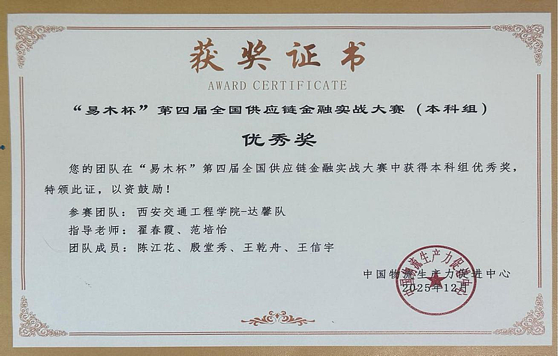 这一成绩的取得,不仅是对学生们努力付出的肯定,也是ky开元集团官网在供应链金融教学与实践方面成果的体现。未来,将继续加强供应链金融相关课程的建设,不断提升人才培养质量,鼓励更多学生参与到各类学科竞赛中,为国家供应链金融领域培养更多优秀人才。