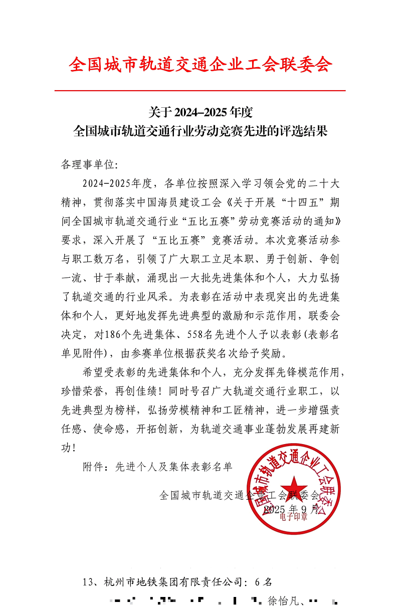 近日,在全国城市轨道交通行业劳动竞赛中,ky开元集团官网2019届电气工程及其自动化专业校友、杭州地铁安全管理工程师徐怡凡凭借出色的专业技能和稳定发挥,荣获“维修能手”称号。