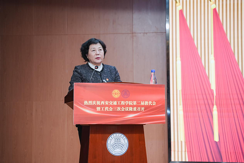 党委书记李萍作总结讲话,她指出,本次大会是一次团结的大会、奋进的大会,进一步统一了思想、明确了目标,为学校“十五五”时期发展奠定了坚实基础。围绕贯彻落实大会精神,李萍书记提出五点要求。一是要持续学习贯彻党的二十大及二十届四中全会精神,将国家发展目标与学校教育教学工作紧密结合,聚焦立德树人根本任务,培养堪当民族复兴大任的优秀人才;二是要牢牢把握发展机遇,全力推进本科教学评建工作达标,各单位要细化任务分工,发挥党员先锋队作用,凝聚全员力量打赢评估攻坚战;三是要全面加强党的建设,提升党组织政治能力,深化党建“双创”工作,推进清廉学校建设,为学校高质量发展提供坚强政治保障;四是要充分发挥教代会和工会的民主管理与监督作用,工会要围绕评建工作开展活动,维护教职工权益,搭建学校与教职工的沟通桥梁,五是传达好会议精神,动员全体师生员工以“道钉精神”扎根岗位、攻坚克难,携手为建设特色鲜明的高水平应用型大学而努力奋斗。