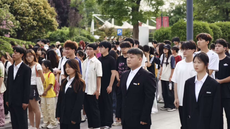 在庄严的国歌声中,五星红旗冉冉升起,全体师生行注目礼,现场气氛庄重而热烈。