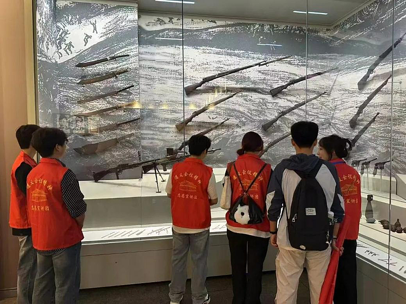 在庄严肃穆的遵义会议纪念馆内,青年志愿者们走进历史现场,身临其境感悟“伟大转折”的精神力量。斑驳的桌椅、陈旧的马灯、泛黄的文献,尤其是那张棱角磨损的长方形会议桌和玻璃罩下煤油灯上的烟熏痕迹,都在无声中讲述着那段风云激荡的历史。墙上仍保留着红军亲笔圈注行军路线的旧军事地图,展柜中陈列着破旧羊皮帽、残损草鞋等实物,更借助多媒体播放的《四渡赤水》纪录片,将长征途中“每一寸土地都浸满热血”的艰辛历程真实再现,让同学们深切体会到革命胜利的来之不易。此次调研学习不仅是一场视觉与心灵的双重洗礼,更是一堂触动思想深处的“行走的思政课”。通过近距离聆听红色故事、瞻仰革命遗迹,同学们深刻认识到,正是无数革命先辈用生命和信仰铺就了今天的和平与繁荣。大家纷纷表示,作为新时代的青年,应自觉肩负起传承红色基因、赓续红色血脉的责任,在新时代征程中接续奋斗,将红色精神转化为实际行动,为民族复兴伟业贡献青春力量。
