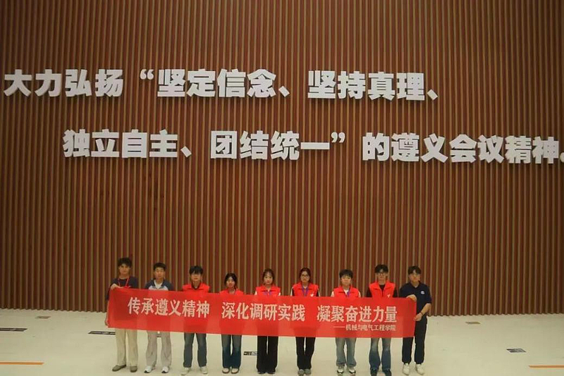 为深入贯彻落实习近平总书记关于“传承红色基因、讲好遵义故事”的重要指示精神,全面落实“强国复兴有我”群众性主题宣传教育活动部署,引导青年学生在沉浸式体验中弘扬遵义会议精神,6月6日,机械与电气工程学院组织开展“走进遵义红色遗址,赓续精神血脉”专题调研学习活动。此次活动由吴明雪带领“道钉之声”青年志愿团总团成员共同参与,旨在通过实地研学,将思政教育与历史现场深度融合,推动青年学生坚定理想信念,汲取奋进力量。