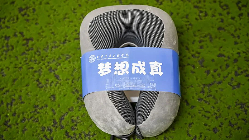 一个象征着”梦想成真”的U型枕,知你来去长途跋涉,舟车劳顿,愿你在旅途奔波中有片刻小憩,枕着母校的臂弯为身体和梦想加油充电;枕芯内侧还藏着老师一句未完的话:若是累了就回来……