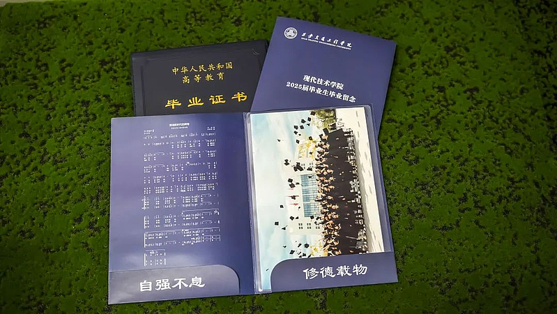 一份装满记忆的毕业生纪念册,校歌谱线间流淌着"自强不息 修德载物"的旋律、辅导员的手写寄语洇开的墨痕、毕业合影中那些个青春的身影,翻阅时愿你能回想起体育场篮球框上的晨光与荷花池秋千上的夕阳,在今后可能平凡平淡的日子里汲取力量。