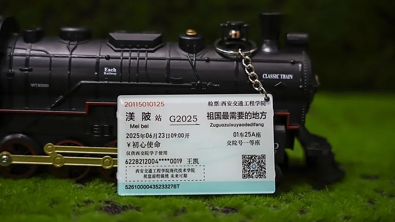 一张专供交院学子的火车票,是通向星辰大海的通行证。G2025次"交院号"列车从渼陂站启程,开往祖国最需要的地方。票面金额为无价的“初心使命”,背后印着千言万语浓缩成三百字的嘱托。当你们在祖国最需要的地方铺展山河经纬,交院号穿越时空的汽笛,会随着这张车票准时送来母校的守望。