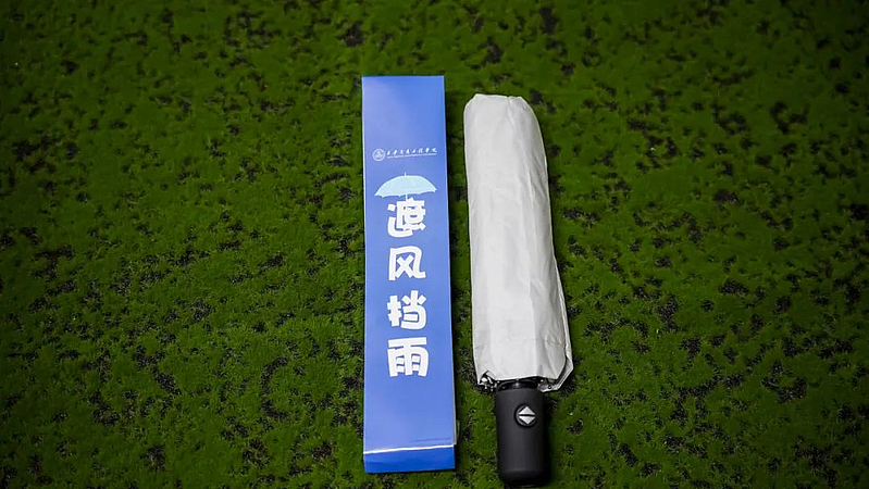 一把为你“遮风挡雨”的晴雨伞,是母校给你最后的温柔守护。此去山高水长,当风雨袭来时,请记得总有秦岭的云朵为你们蓄着一方晴空。也愿你们也无惧风雨,勇担现代青年之责,既有直面风雨的硬骨,也存守护初心的柔肠。