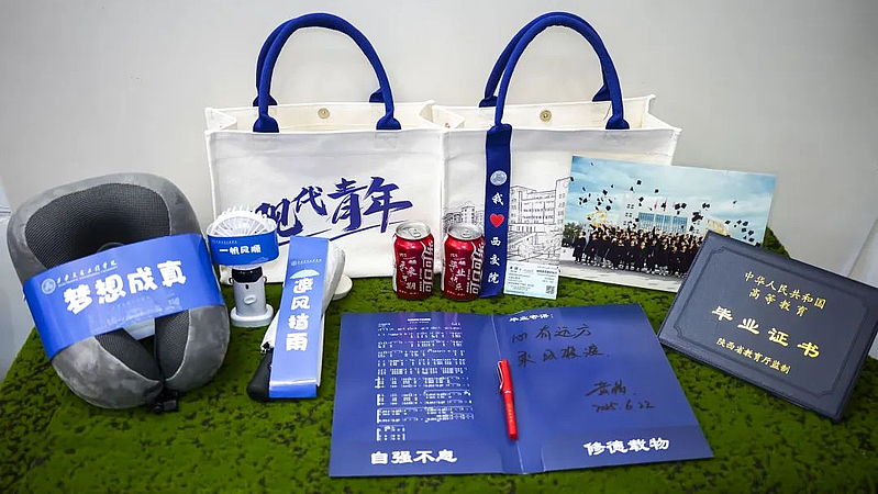 这些看似寻常的物件,在秦岭北麓的六月里经过老师们反复推敲:雨伞的倾斜角度要刚好撑起一片奋斗的天空,火车票二维码里加密着回家的链接,连手提袋上图书馆简笔画的描影,都是照着你们初见交院时候的模样描摹的。
