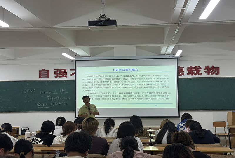 讲座围绕逆向物流回收路径的优化问题展开,徐阳教授结合自身研究成果,系统介绍了逆向物流的发展现状、关键挑战及优化路径的核心技术。他通过案例分析,详细讲解了数学模型、智能算法在回收网络设计中的应用,并分享了如何通过路径优化降低物流成本、提升资源循环效率的实践经验讲座现场学术氛围浓厚,师生互动热烈。在交流环节,参会师生就逆向物流的实际应用、算法改进及未来研究方向等问题与徐教授展开深入探讨。徐教授耐心解答了大家的疑问,并鼓励学生将理论知识与实践相结合,为绿色供应链发展贡献力量。