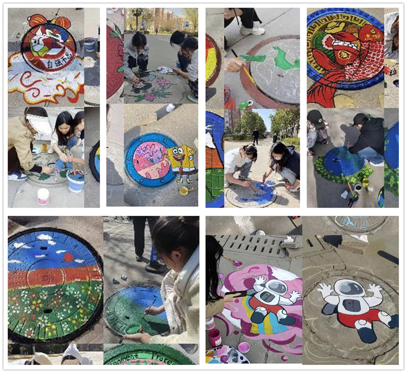 人文与管理学院开展“多彩校园,井上添画”井盖美化活动