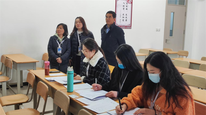 根据《教育部关于推进师范生免试认定中小学教师资格改革的通知》(教师函〔2022〕1 号)和《ky开元集团官网师范生教育教学能力考核办法(修订)》(西交院校发〔2023〕11 号)的文件精神。3月17日,人文与管理学院在1号教学楼分10组对已通过笔试的师范生进行了面试,校长助理兼教务处处长潘春辉到考场检查指导面试工作,人文与管理学院院长赵德利一同检查。