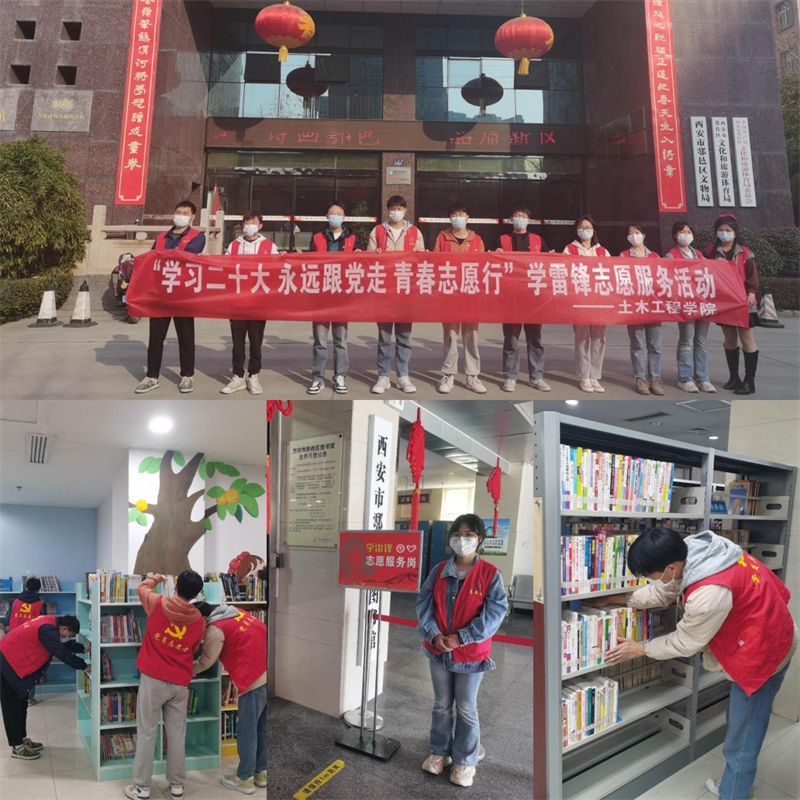 ——在鄠邑区图书馆开展志愿服务活动。3月5日下午,土木工程学院学生志愿者前往鄠邑区图书馆开展了“学习党的二十大 永远跟党走 青春志愿行”学雷锋志愿服务活动。