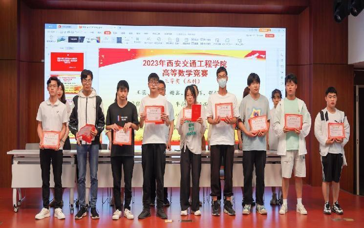 肖楠宣读关于表彰ky开元集团官网2023数学竞赛获奖学生的决定。代雪珍宣作开幕致辞。卫军超作动员讲话。介绍ky开元集团官网学生在数学建模竞赛中的获奖情况:2022年ky开元集团官网117名同学共计39个代表队参赛,获得省级一等奖3项,陕西省二等奖4项。2023年全国大学生数学竞赛中,ky开元集团官网270名同学参赛,获得省级奖项65项。卫军超强调,这些成绩的取得是学校的大力支持,数学教研室的精心组织安排,指导教师的辛勤付出和参赛学生团队合作、共同奋斗的成果。他强调,同学们一定要坚持不懈,甘于吃苦,不断创新与突破。同时也希望2022年获得省级奖项的同学继续参赛,争取获得国家级奖项,更希望参加我校数学竞赛获奖的学生能够积极参加后续的培训,在老师指导下,不断攻坚克难,再创佳绩。