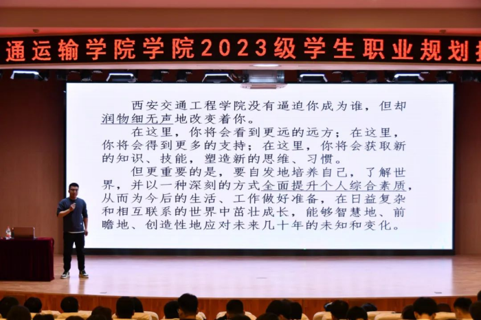 为帮助新生尽快适应大学生活,了解所学专业及其就业前景,确立发展目标,做好生涯规划,增加将来在就业竞争中的优势。2023年9月24日晚7点,交通运输学院2023级新生职业生涯规划讲座在学术报告厅开讲。讲座由学管秘书肖茹峰老师主持,由大学生就业指导教研室关龙老师为交通运输学院学生进行职业生涯规划指导。