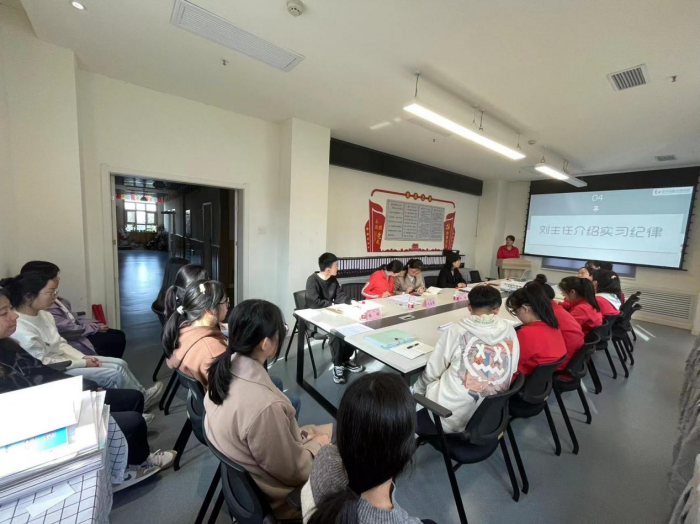 空工大蓝天幼儿园冯副园长对实习生的到来表示欢迎,并介绍了幼儿园的实习计划和要求。明确了班长教师职责,为实习教师提供专业帮助。后勤刘主任强调了有关安全、工作纪律和在园生活注意事项等内容,并预祝实习老师们工作愉快,实习顺利!