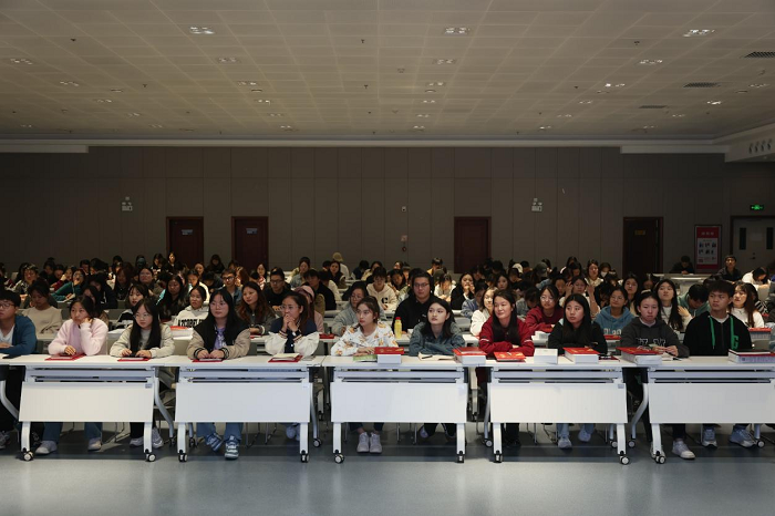 随后,获得2022-2023学年“学习标兵”荣誉称号的学生代表罗水侠发言。她从个人经历与感悟出发,向同学们分享了自己过去两年中通过努力拼搏获得国家奖学金的学习经验。鼓励同学们科学备考、合理抉择,积极参加学科竞赛和社会实践活动,在实践中不断完善知识结构,争取站在更高的平台实现自己精彩的人生。