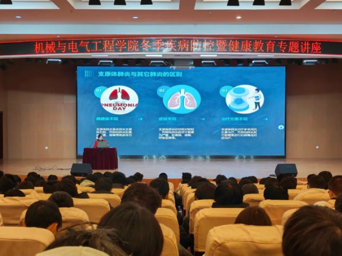 为进一步加强学院冬季传染病防治工作,普及冬季常见传染病预防知识,提高同学们的防控意识和自我防护能力。12月21日,机械与电气工程学院组织开展冬季疾病防控暨健康教育专题讲座。各辅导员及学院全体学生参加此次讲座,校医务室曹老师担任主讲人。