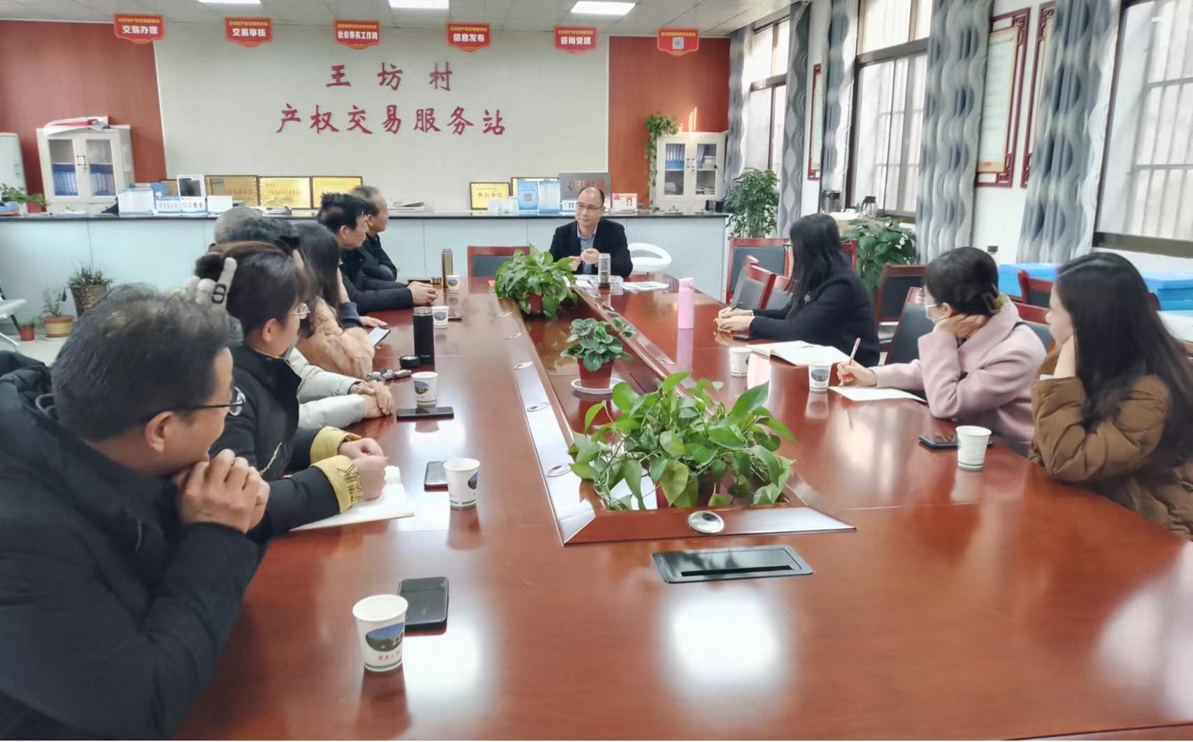 王坊村党支部书记赵焕黎热情接待了段联合院长一行,并对此次调研的目的做了简要介绍。赵书记介绍了王坊村的基本情况,王坊村坚持“富民”与“强村”相结合,通过农村集体产权制度改革,盘活村集体经济,助力乡村振兴,不断激发集体经济发展活力。