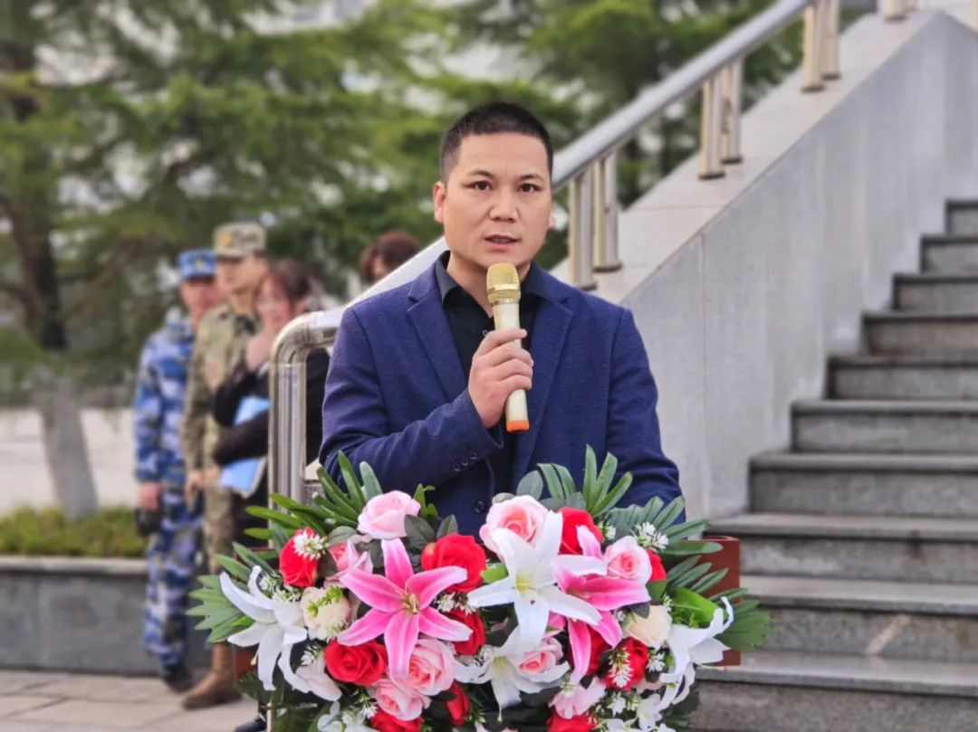王拓辉在国旗下发表讲话,他表示国家民族的复兴大业需要青年一代担当尽责,理想抱负和人生价值需要青年一代追寻打拼,时代在召唤、使命在激扬,希望同学们永葆爱国情怀,坚定理想信念,勇担时代重任,练就过硬本领,敢于挑战自我,勇于探索未知领域,不断开拓思维、善于创新、不畏困难,做出改变和突破,时刻谨记道钉精神,争做永不生锈的螺丝钉,锐意进取的弄潮儿,追风赶月的奋斗者。