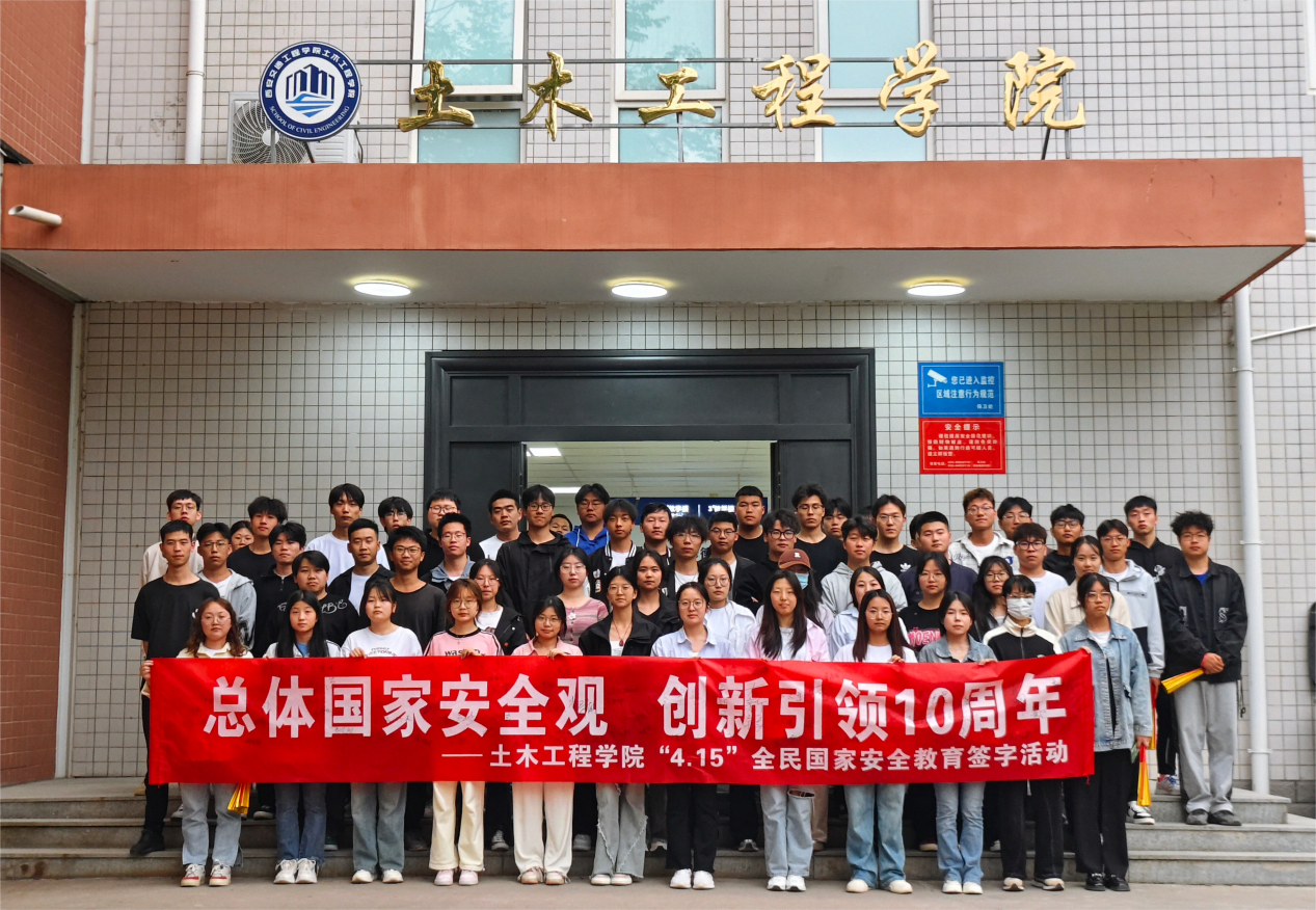 ——开展国家安全教育日主题签名活动。4月15日下午,土木工程学院组织师生在“总体国家安全观 • 创新引领10周年”活动主题横幅上签名。在庄严的氛围中,师生代表依次走到签字台前,郑重地签下了自己的名字。这一签字,不仅代表着他们对维护国家安全的承诺和决心,更是对全体师生共同参与国家安全教育的见证。