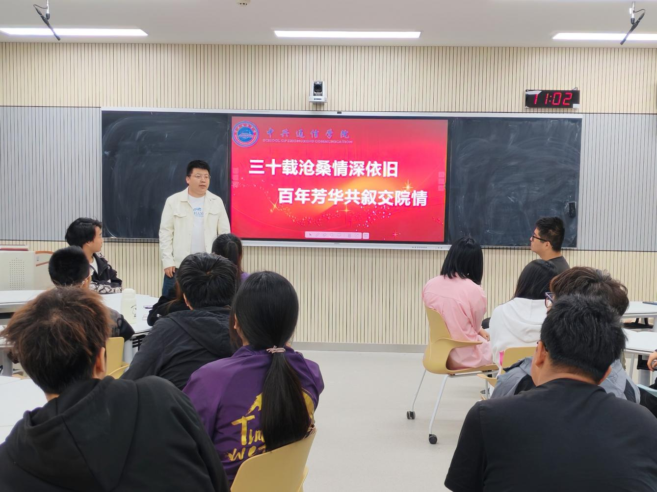 三十载沧桑情深依旧,百年芳华共叙交院情。2024年4月23日,中兴通信学院杰出校友段磊回到母校开展座谈交流会,学校校友总会主任王拓辉、该学院党政领导班子及辅导员参加了座谈会。