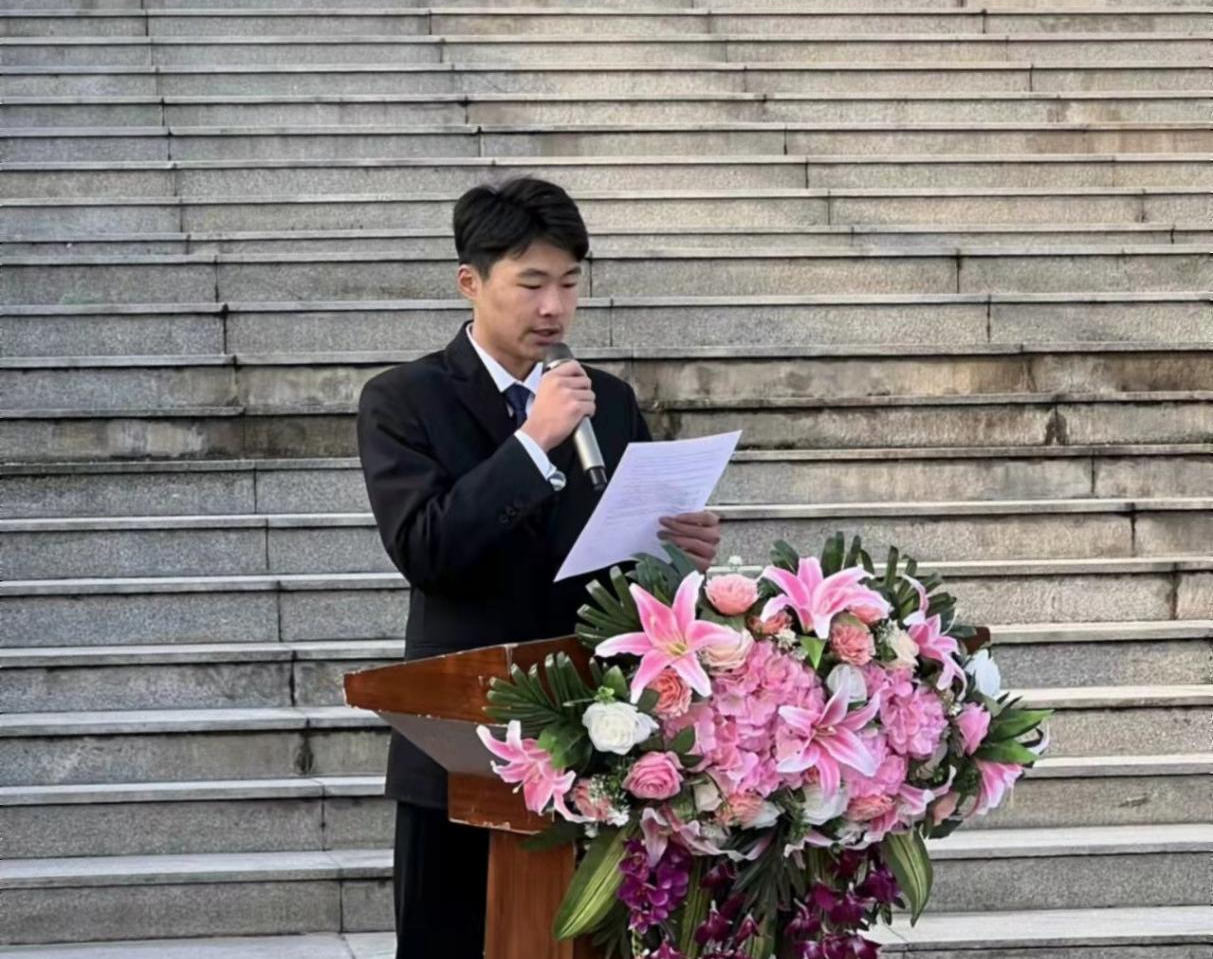2023级施榆慧同学作为学生代表上台发言。他以“青春为中国式现代化挺膺担当”为题,分享了自己的成长经历和理想追求,表达了对祖国的热爱和对未来的信心。他指出,作为新时代的青年,大家要以五四青年为榜样,继承五四光荣传统,弘扬五四精神,在“五四”精神的激励下,肩负起自己的使命感、责任感。