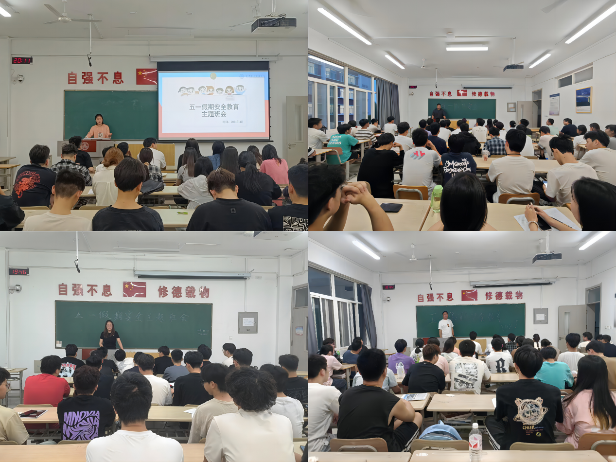 ——召开“五一”假期安全教育主题班会。近日,土木工程学院辅导员利用晚自习时间组织召开“五一”假期安全教育主题班会。班会上,辅导员老师首先向同学们强调了“五一”劳动节期间的安全问题,要增强安全意识和自我防范意识,增强防盗、防诈骗意识。随后通过讲解真实案例、普及安全知识、解答安全问题等形式,从交通安全、居家安全、网络安全、防溺水安全、食品卫生安全等多个方面对同学们进行了安全教育,要求同学们在假期合理安排时间,文明出行,确保人身和财产安全。辅导员老师强调要重点防范网络诈骗,提醒同学们,安全无小事,必须时刻保持警惕,做到不刷单、不投资、不点陌生链接、文明交友。