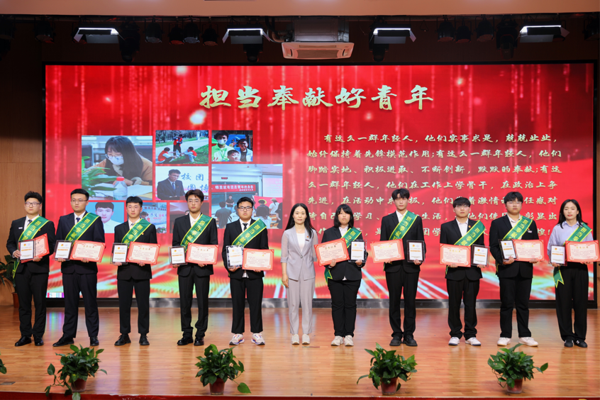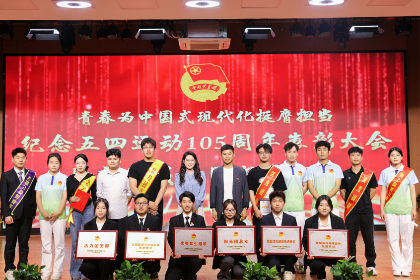 5月10日下午,ky开元集团官网“纪念五四运动105周年表彰大会暨新团员入团教育仪式”在学术报告厅隆重举行。现代技术学院在学校“五四”评选活动中,最终在6类集体奖项和10类个人奖项中荣获佳绩。其中,我院党委书记田宏顺获评“支持共青团工作好书记”,团总支书记黄晶老师获评“优秀团干部”,我院团总支获评“阳光团总支”、“优秀学生组织”、“活力团支部”、“校园文化建设先进单位”、“新媒体与网络宣传先进单位”、“志愿服务与社会实践先进单位”集体奖项。21名同学获评“优秀共青团员”,3名同学获评“魅力团支书”,2名同学获评“担当奉献好青年”,3名同学获评“志愿公益好青年”,2名同学获评“创新创业好青年”,1名同学获评“社会实践好青年”,1名同学获评“向上向善好青年”,3名同学获评“文艺好青年”。