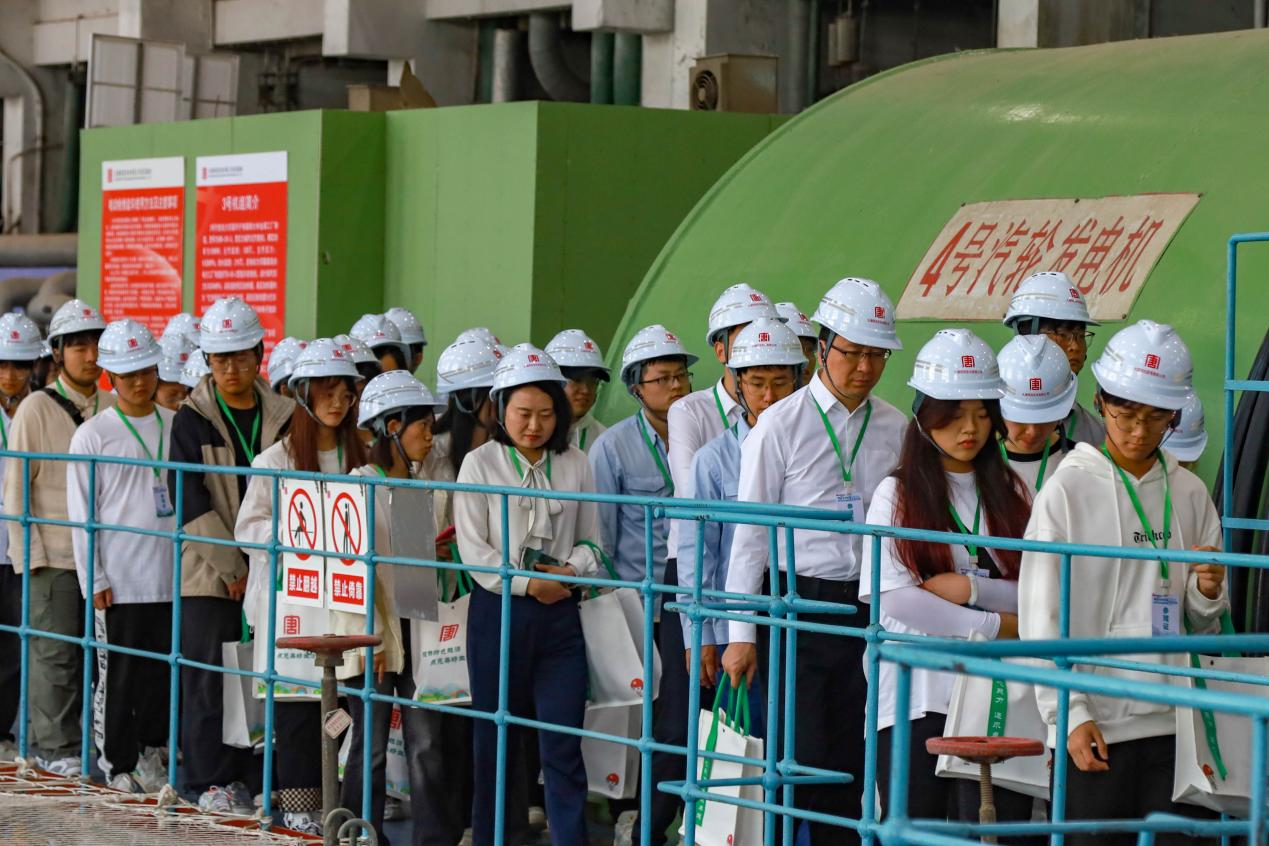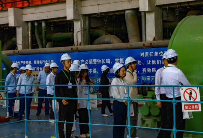随后,师生们在志愿者的带领下,参观了该厂时光梯、老物件展柜、文化长廊、老厂区汽机房、在运机组生产现场等,近距离了解企业70年艰苦奋斗的光辉历程和未来发展方向。在参观过程中,热电厂安监部专人进行了安全生产教育,确保了参观的安全性。师生们参观了老发电厂集控室主盘,亲身体验了火电机组的发电流程。此外,还参观了企业历史展览区、工业文化遗产保护和利用区域,以及在运机组生产现场,全面了解大唐西安热电厂的发展历程。