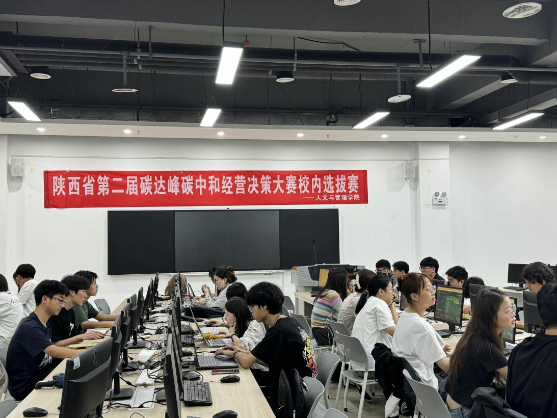 为了培养学生碳核算、碳减排、碳管理与碳经营岗位能力,5月25日,人文与管理学院在数智商科实训室举办了陕西省第二届碳达峰、碳中和经营决策校园选拔赛,本次大赛由物流管理教研室承办。