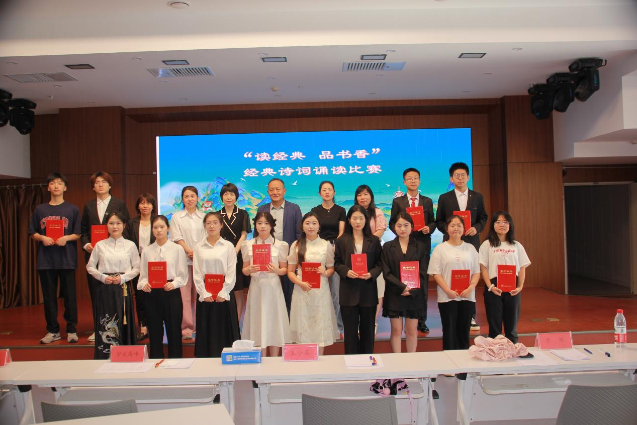 由图书馆副馆长黄晓燕宣读了获奖名单。人文与管理学院崔一诺朗诵的《以时代之眼,我们这样看中国》获得一等奖;人文与管理学院王明月朗诵的《将进酒》和陈圆圆朗诵的《蜀道难》获得二等奖;机械与电气工程学院左天宇朗诵的《大写的中国》、人文与管理学院敬怡寒朗诵的《再别康桥》、机械与电气工程学院李家辉小组朗诵的《少年中国说》获得三等奖;人文与管理学院杨钦青朗诵的《水调歌头·明月几时有》等五个作品获得了优秀奖。最后由团委书记王小英及图书馆馆长宇文高峰编审为获奖同学颁发获奖证书及奖品,并与获奖者合影留念。