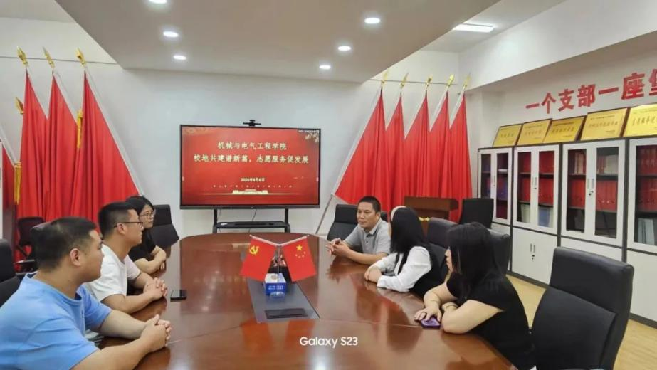 为表达对机械与电气工程学院志愿服务工作的敬意和谢意,进一步发扬学院建立的长期志愿服务进取精神,6月7日,西街社区为我院送上一面题词为“走进基层服务群众,青年力量尽显担当”的锦旗。副校长石广田教授、学院党委书记王拓辉、党委成员王新焕、赵伟冬、西街社区工作人员参加此次活动。
