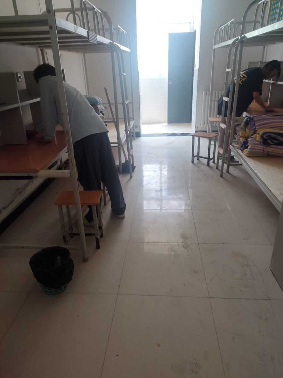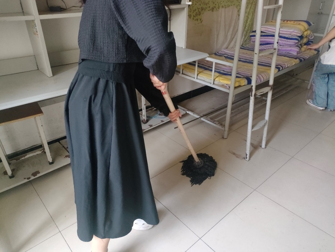 在他们的辛勤努力下,活动区域被打扫得一尘不染,地面洁净如镜,原本杂乱的角落也变得整洁有序,整个环境焕然一新。他们出色地完成了打扫任务,曾经布满灰尘的地方如今整洁光亮,每一个细节都彰显着他们的认真与负责。