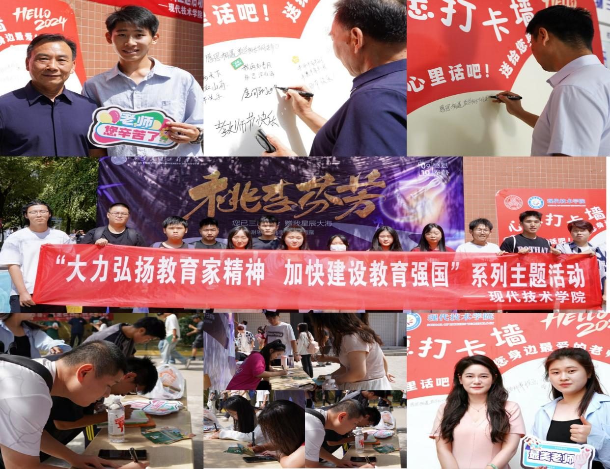为大力弘扬教育家精神,传承尊师重道的传统美德,全面展示学校教师立德树人、自信自强的精神风貌,在第40个教师节来临之际,现代技术学院结合“大力弘扬教育家精神,加快建设教育强国”主题精神,开展了系列主题活动,向全体教职工致以最诚挚的敬意和感谢。