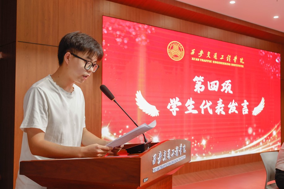 紧接着,教师代表徐炜老师上台发言。徐炜老师分享了自己的教学经验和心得体会,并对新生们提出了殷切的期望。希望同学们能够积极主动地参与到学习和实践中去,不断提升自己的综合素质。
