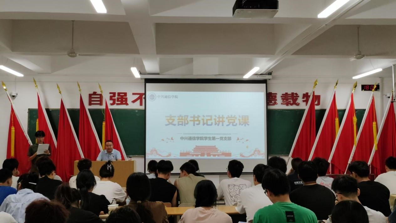 2024年9月19日,中兴通信学院学生第一党支部开展支部书记讲党课活动。活动由中兴通信学院学生第一党支部书记郭锦亮同志主讲,全体党员、预备党员、各期积极分子参加,党小组负责人郝煜同志主持。
