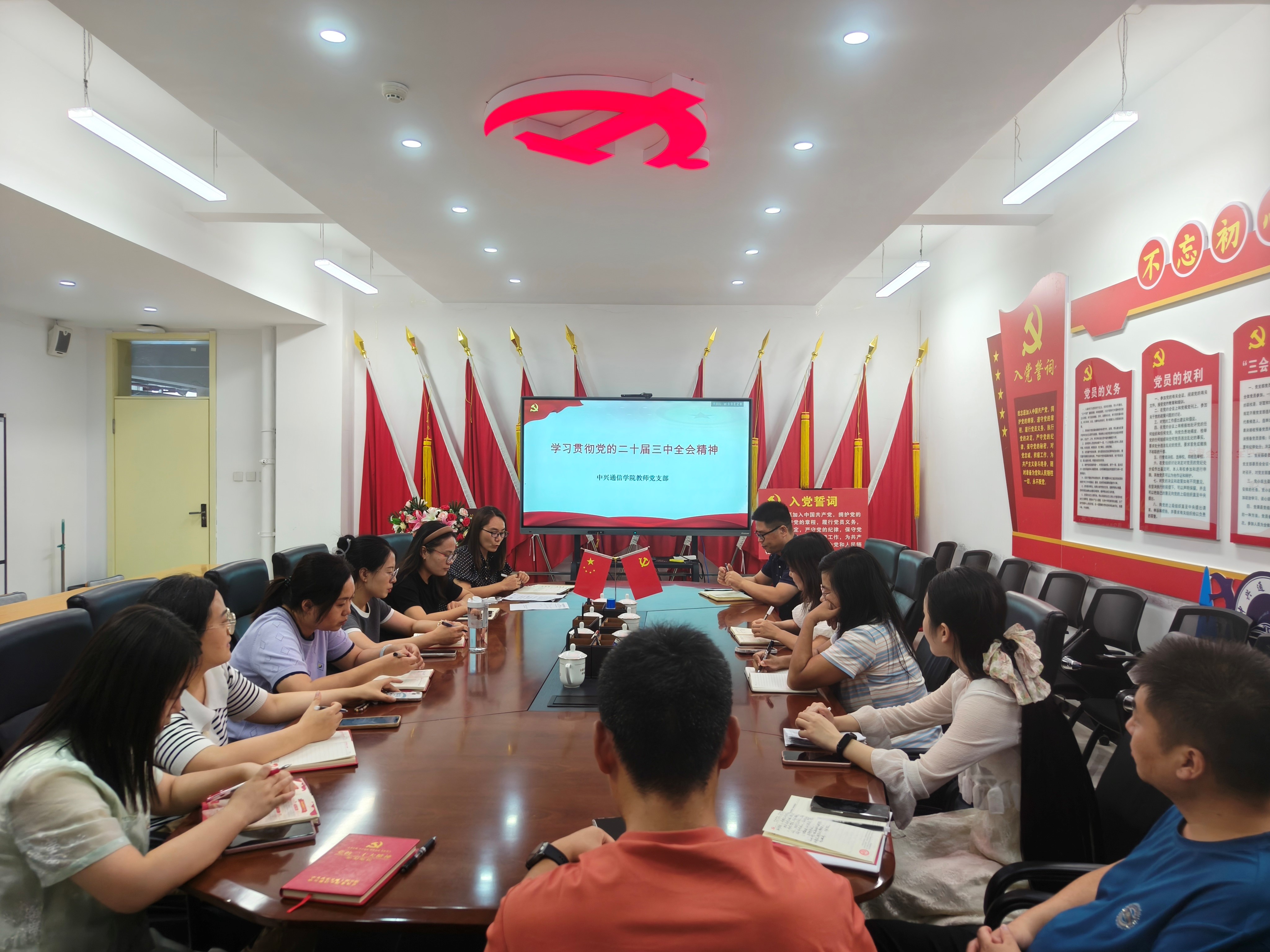 2024年9月18日,中兴通信学院教师支部积极组织开展了学习贯彻党的二十届三中全会精神的专题活动,全体教师党员以饱满的热情和高度的责任感参与其中,掀起了学习全会精神的热潮。会议提出,全体教师党员要深刻领会全会精神,将其融入到日常的教育教学工作中,为培养德智体美劳全面发展的社会主义建设者和接班人贡献力量。学习贯彻党的二十届三中全会精神是当前和今后一个时期的重要政治任务,全体教师党员要以此次活动为契机,不断提高政治素养,增强学习的自觉性和主动性。同时,要将全会精神落实到具体的教育教学工作中,以实际行动践行教育工作者的使命和担当。通过此次专题活动,中兴通信学院教师支部的全体教师党员对党的二十届三中全会精神有了更深刻的理解和认识,进一步明确了自己的责任和使命。