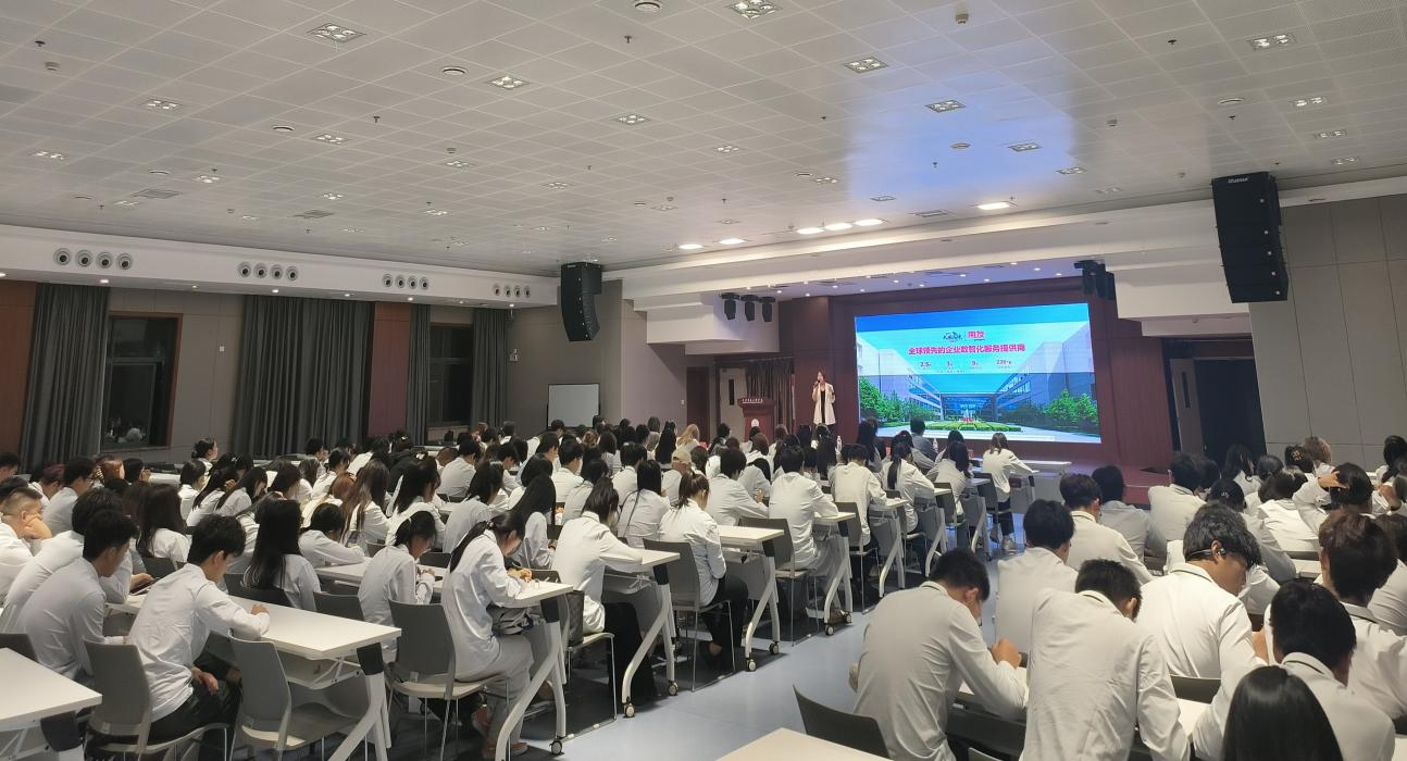 同时,为进一步提高财务管理专业学生对企业的认知,以及企业文化的理解,提升学生适应能力,拓宽专业视野。开班仪式后,王海涛在集贤楼会议室开展了以“数智商科产业学院企业文化”为主题的讲座。讲座中,王海涛介绍了用友集团的发展历程、产品矩阵、发展方向。还详细介绍了友道创新提出的企业服务新理念:BIP(商业创新平台),及其五大价值:网络协同、数据智能、链接资源、重塑流程、敏捷创新,以及PDCA管理循环。他自豪地讲到用友值得信赖并呼吁大家加入用友这个温暖大家庭。