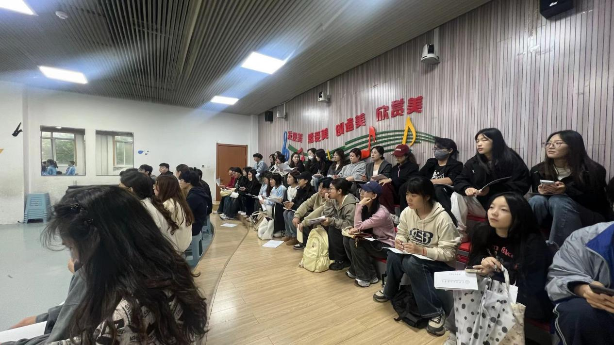在观摩过程中,学生们见证了音乐教师们如何通过体态律动,引导学生们感受民族音乐的特点。教师们巧妙地运用舞蹈动作将抽象的音符具象化,用乐器“响板”敲击重拍节奏,使学生在实践活动中轻松学唱歌曲,深刻感受音乐的魅力。学生们从课堂教学内容、教学方法、课堂纪律管理以及教师的言行举止等多个方面进行了全面学习,深入了解了小学音乐课程的授课模式,为未来的学习指明了方向。