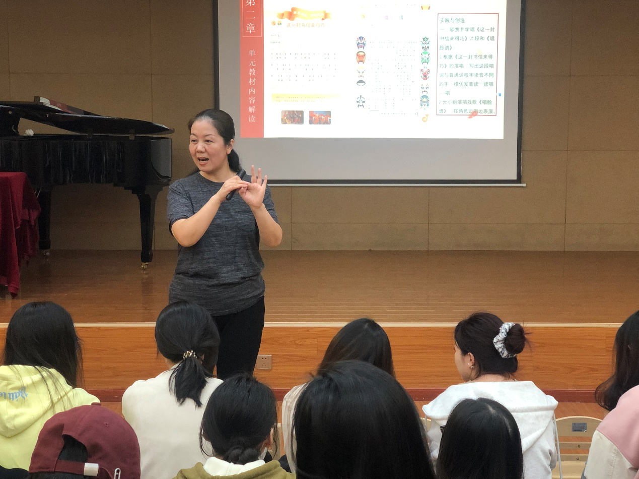 罗敏老师围绕中小学合唱教学展开阐述。她全面讲解了合唱团的组建、合唱团员的选拔、合唱团的训练以及合唱比赛的注意事项等方面。罗敏老师在讲解过程中,重点突出了对于学生的关爱。她强调,音乐教育不仅仅是传授技能,更是要关注学生的成长和发展,用爱心去呵护每一个学生的音乐梦想。罗老师的分享充满了人文关怀,让在场的师生深受感动。