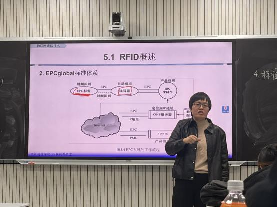 第二场活动是由教研室主任张俊芳老师讲授《物联网通信技术》课程。内容聚焦于RFID技术的概述,旨在为新入职教师提供宝贵的学习机会。活动中,张老师结合多年工作经验,深入浅出地讲解了RFID的定义、应用场景及未来发展,并结合我国RFID技术的应用、发展情况,给学生树立科技报国的意识,达到知识传递与课堂育人的双重目标。