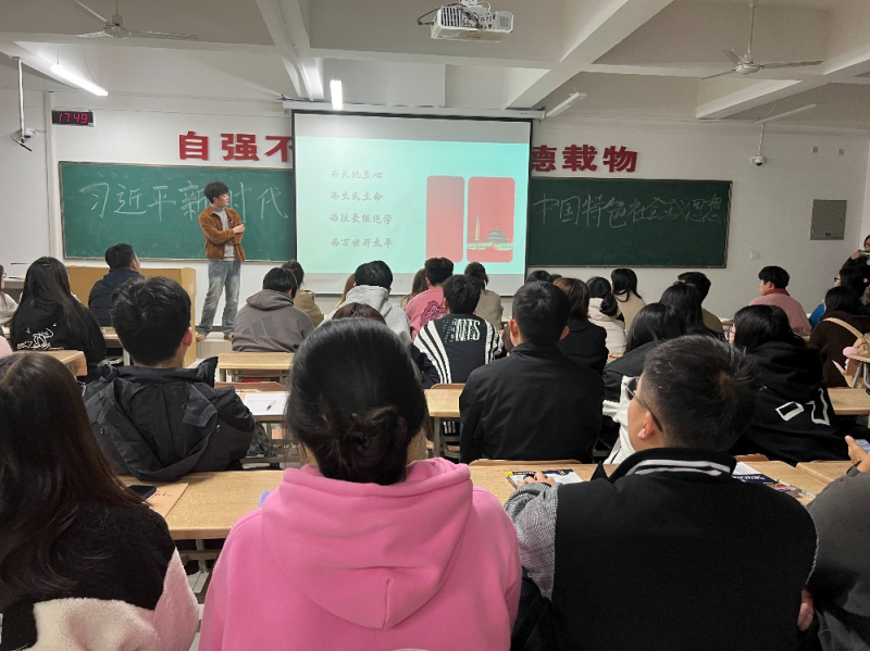 党课党课分别从习近平新时代中国特色社会主义思想的提出背景、习近平新时代中国特色社会主义思想的主要内容、习近平新时代中国特色社会主义思想的精髓要义、永葆青春之心,走好时代之路四个方面进行讲述,深入剖析了习近平新时代中国特色社会主义思想的核心要义,着重阐述了坚守人民中心地位、全面推动法治中国进程及加速经济高质量发展的重大意义。借助鲜活的实例与深刻的交流,激励学生党员将个人成长融入国家兴盛的大潮中,立志成为志向远大、能力出众、勇于担当的新时代杰出青年。