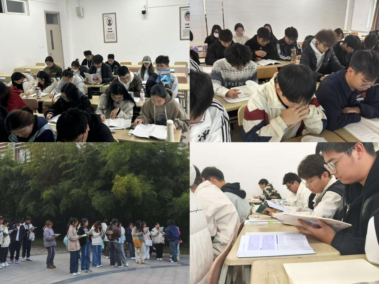 晨读正当时活动是我院提升学风建设的积极践行之一,我院采取低年级按专业、分班级室内早读,高年级根据备考英语四六级、强化专业学习等实际需求分布图书馆、校内早读,坚持早读有计划有目标。