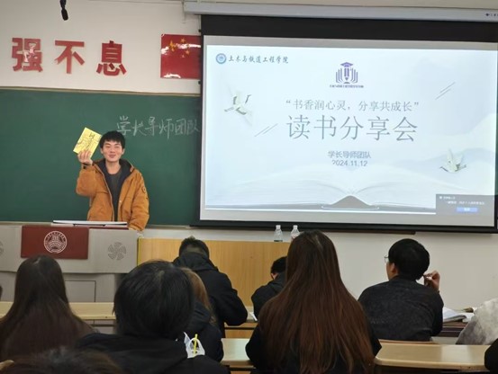 土木与铁道工程学院学长导师团队在2024级班级组织开展了以“书香润心灵,分享共成长”为主题的读书分享会。同学们热情地交流了他们的读书体会,并分享了自己喜爱的书籍。自由地表达自己的观点,思想的火花在此碰撞、交融,学会如何在阅读中提升个人修养和内涵,将阅读培养成一种日常习惯,一种学习的时尚,以及生命成长中不可或缺的一部分。