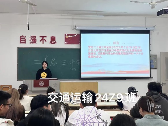 为深入学习贯彻党的二十届三中全会精神,不断增强青年学生为中国式现代化挺膺担当的责任感和使命感。11月19日,在交通运输学院的统一组织下,各班级团支部开展了深入学习党的二十届三中全会精神主题团课。